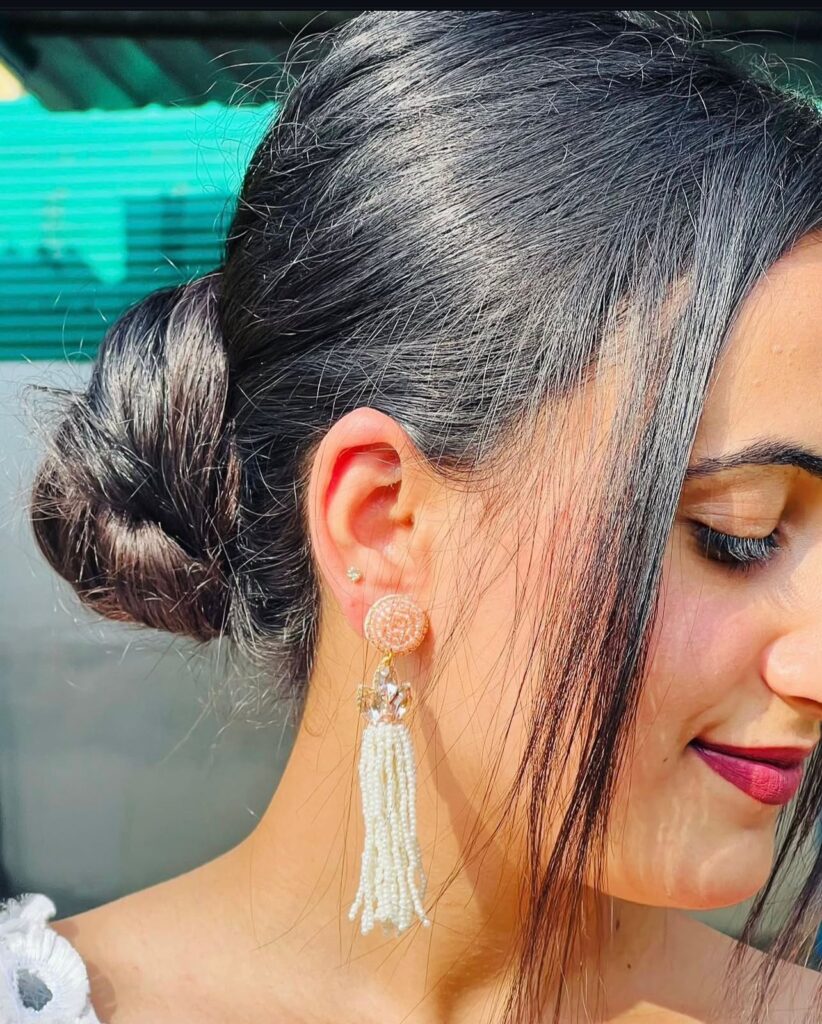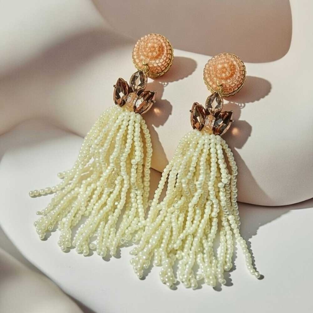 Ivory Peach Natural Pearl Cascade Tassel Earrings