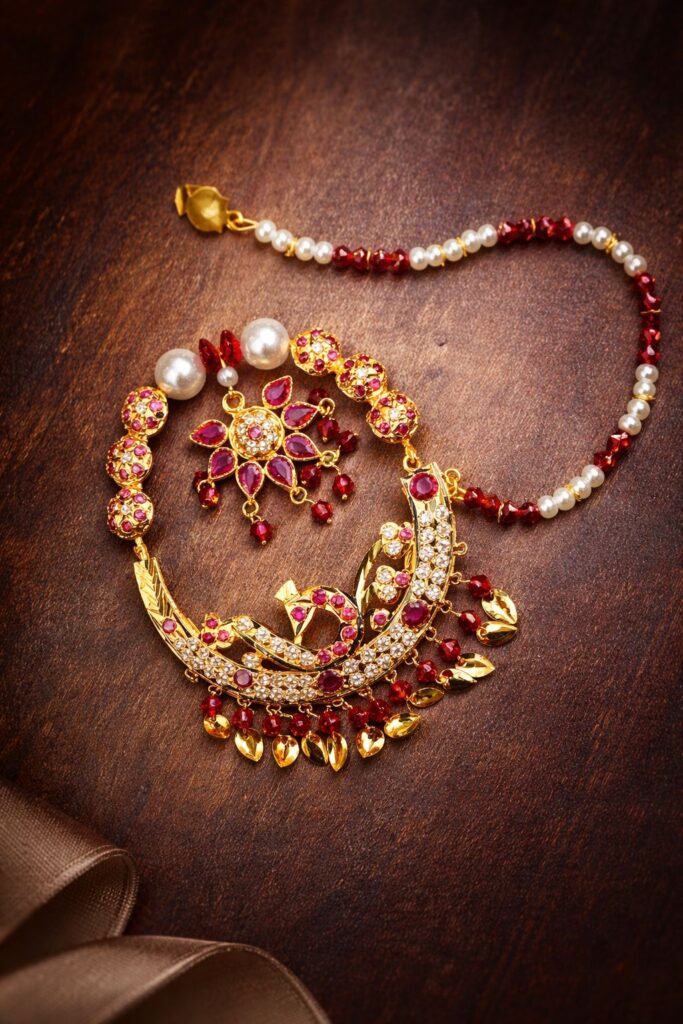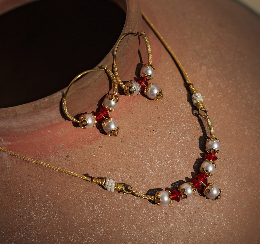 Himachali Pearl & Red Bead Chandrahaar Mala Set – 1 Gram Gold Polish