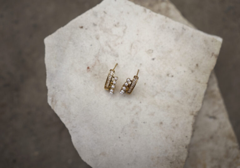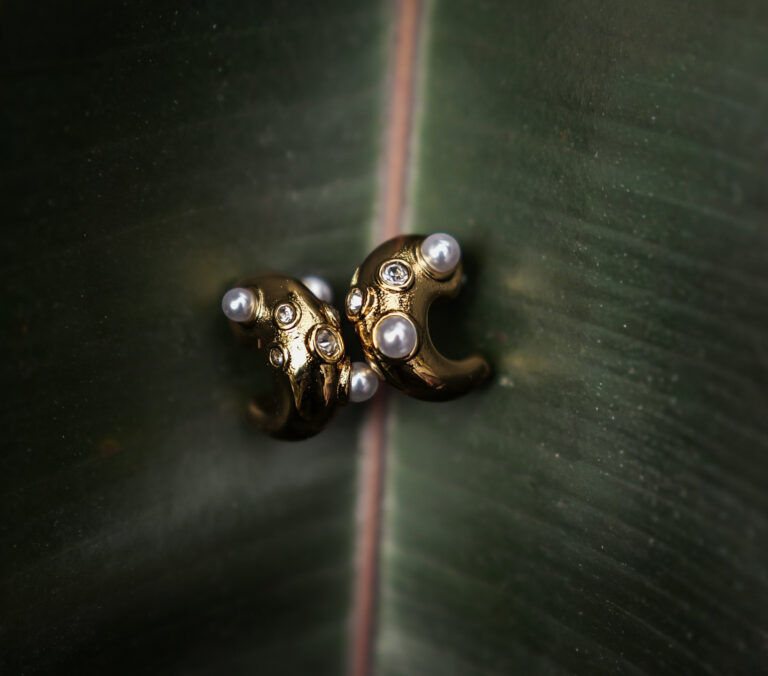 MoonLuxe Anti-Tarnish Gold Pearl half hoops