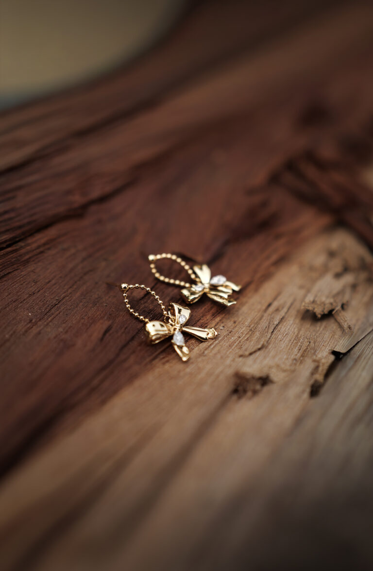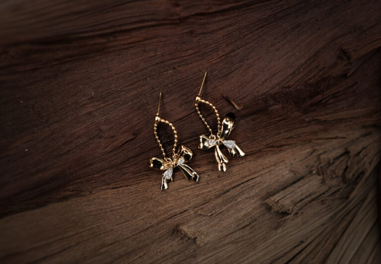 Golden Bow Charm Drop Earrings