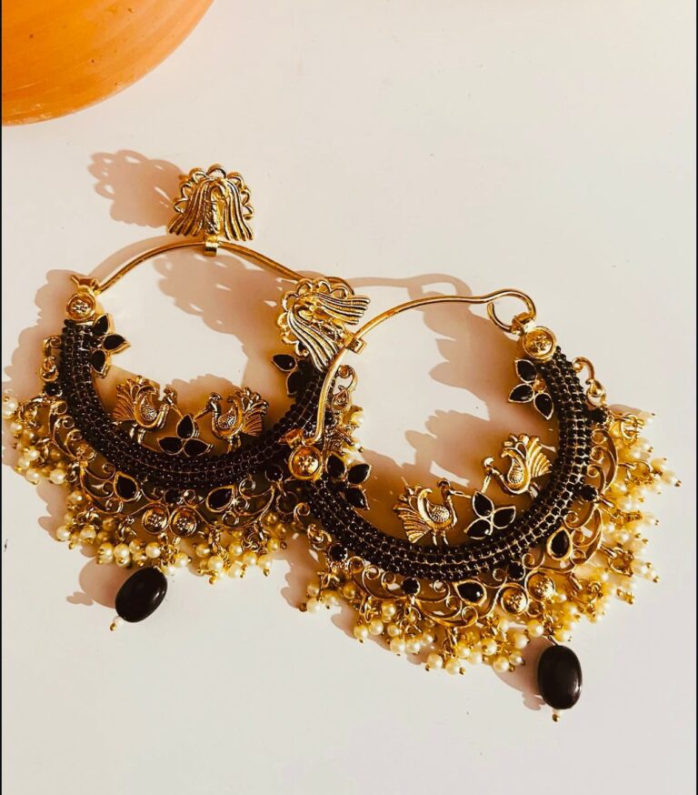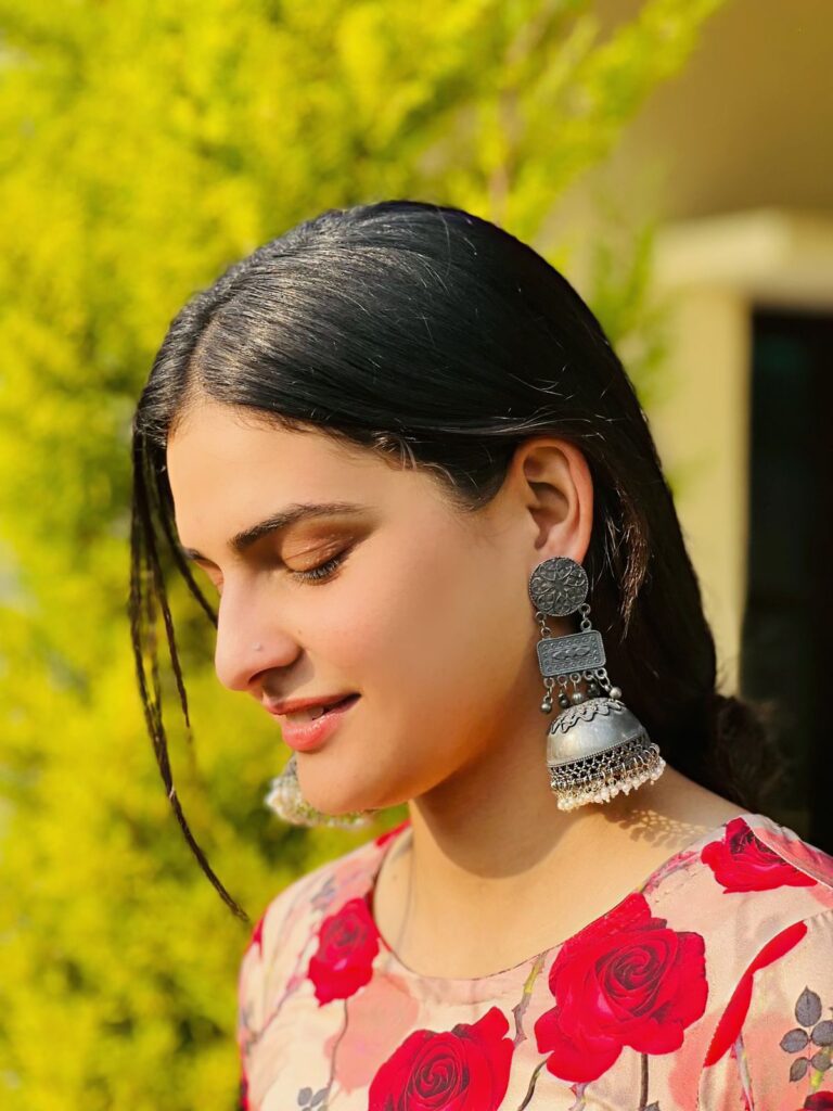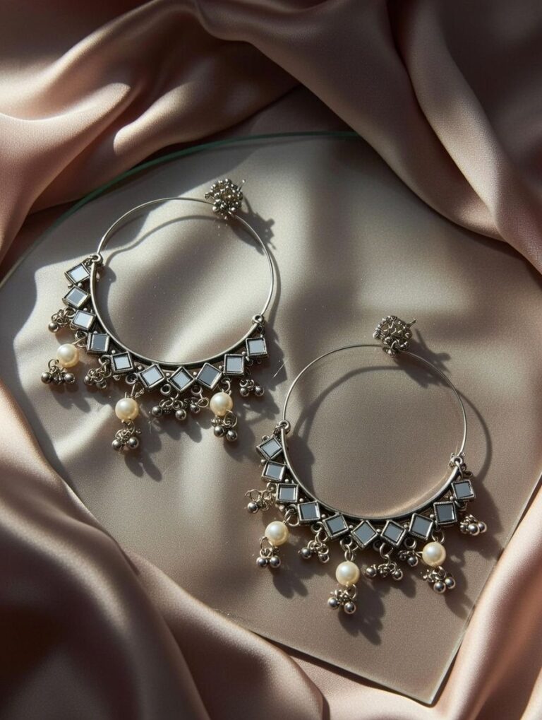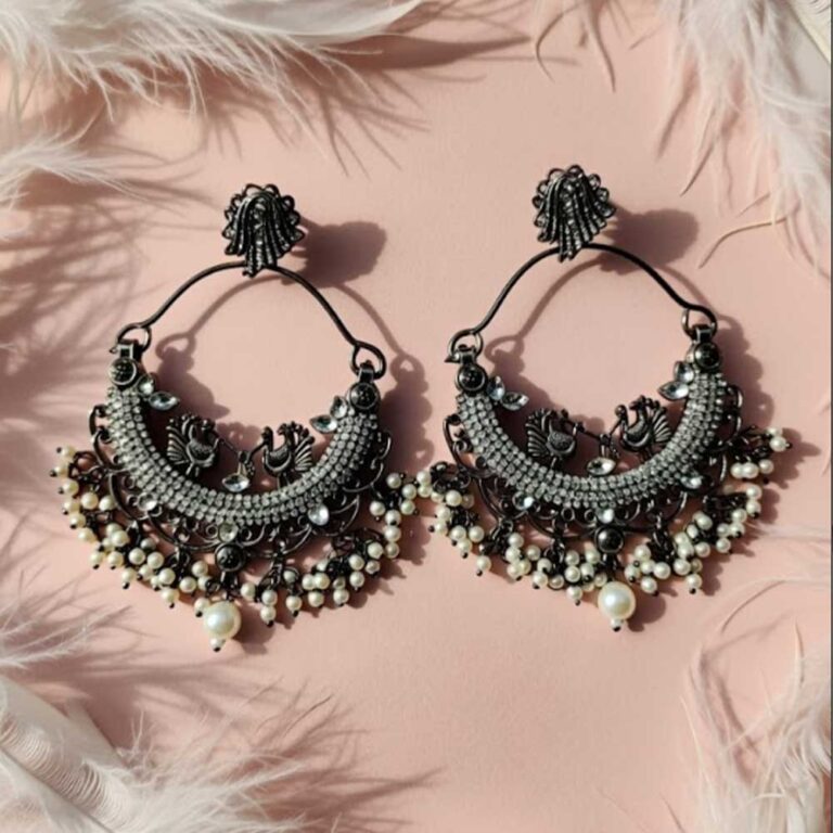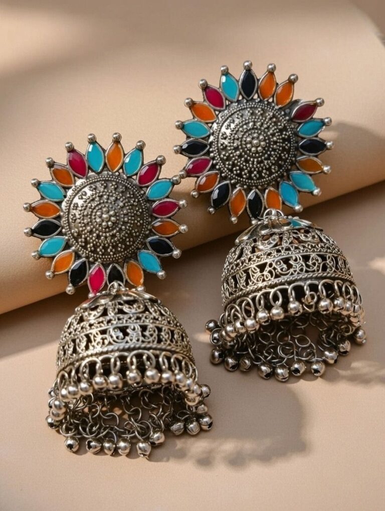 Antique Oxidized Silver Jhumka Chandelier Earrings with Cluster Bells