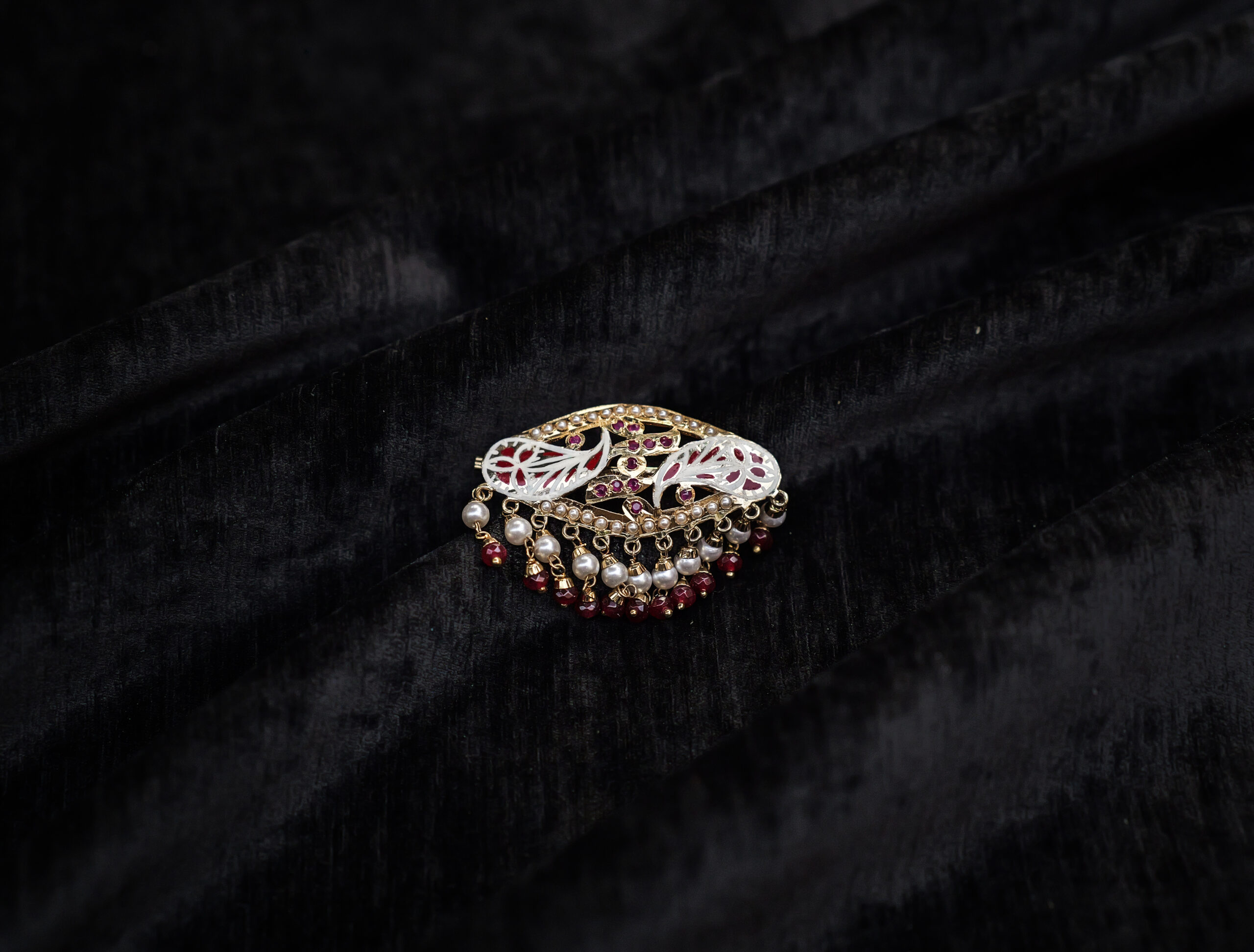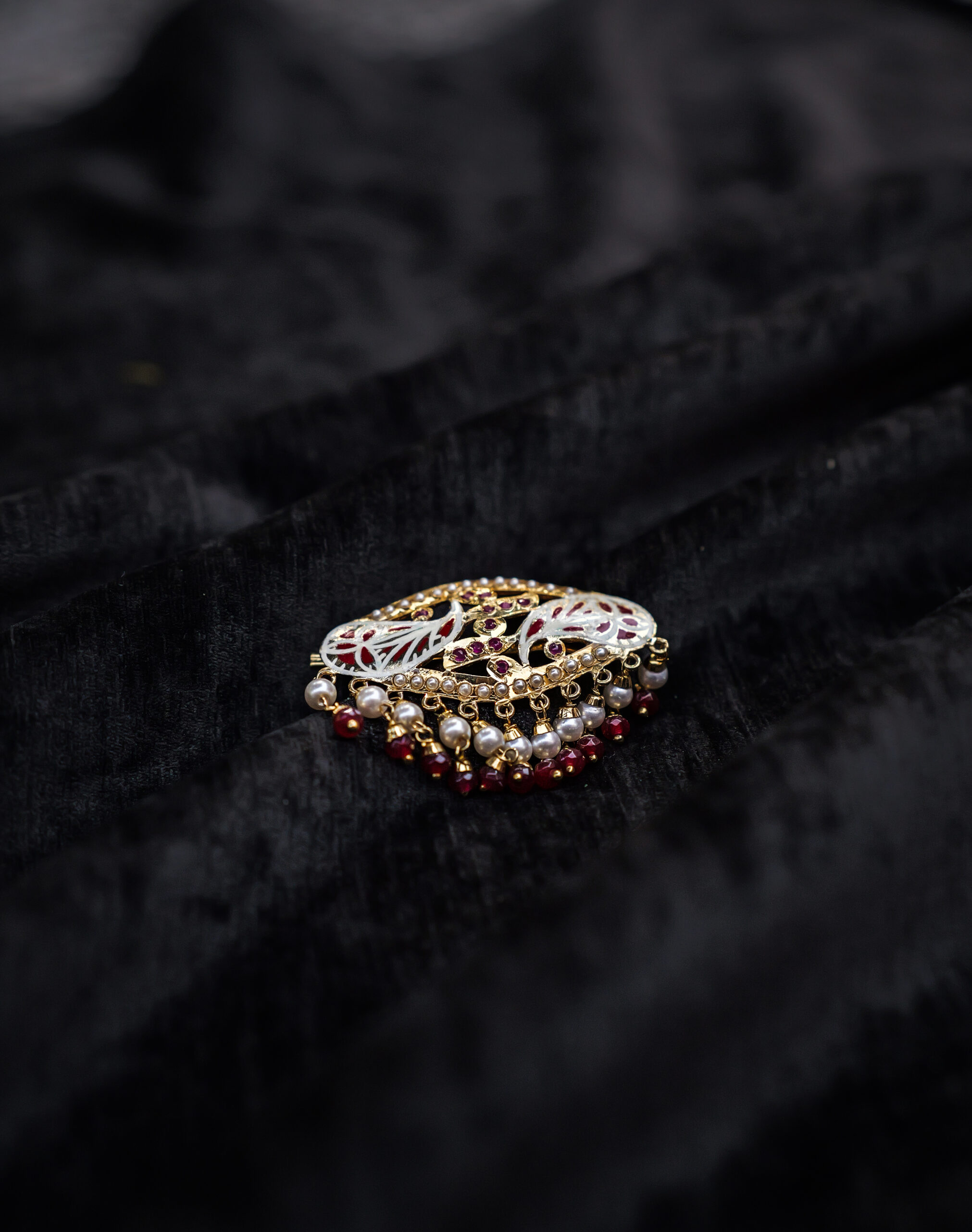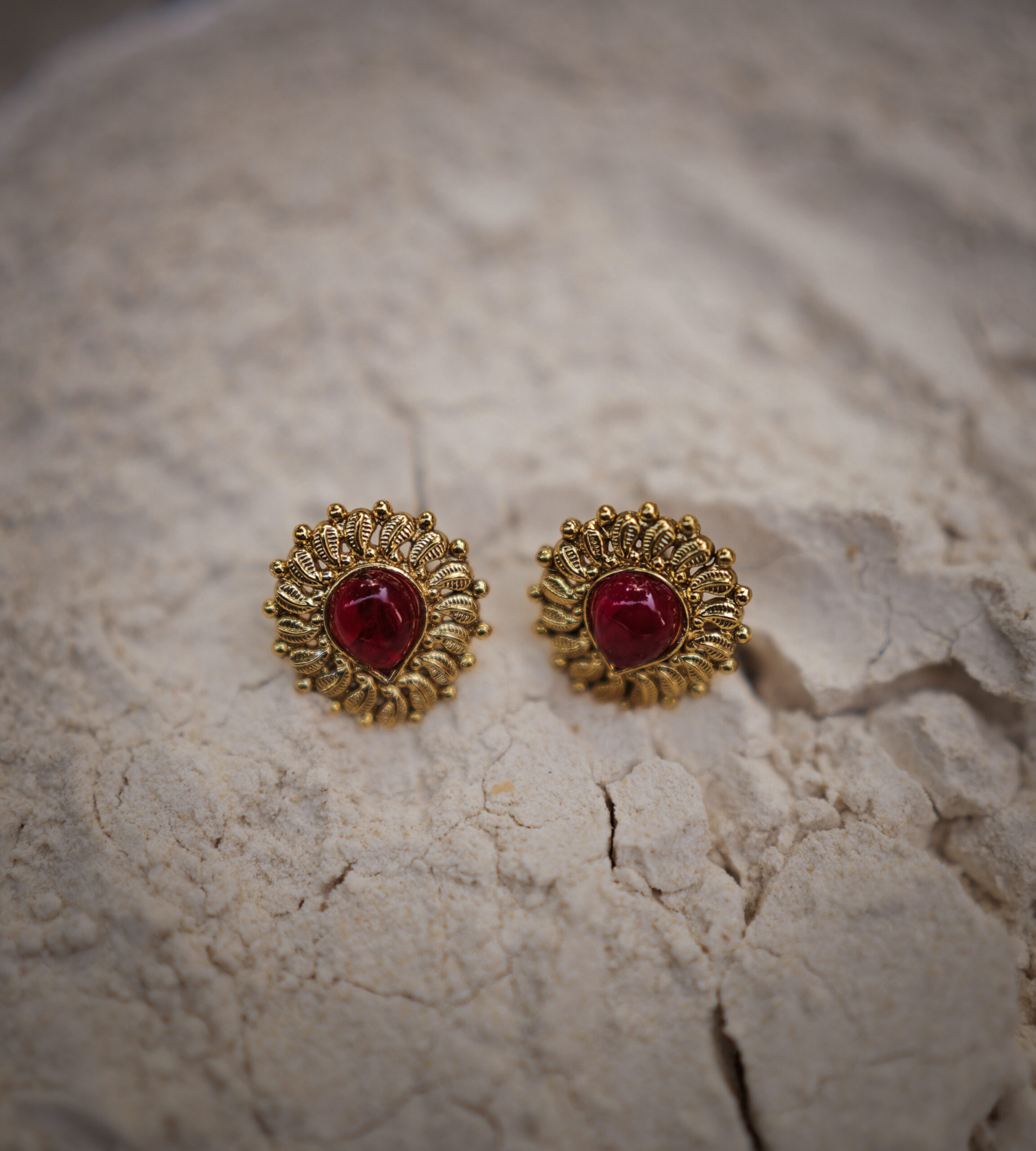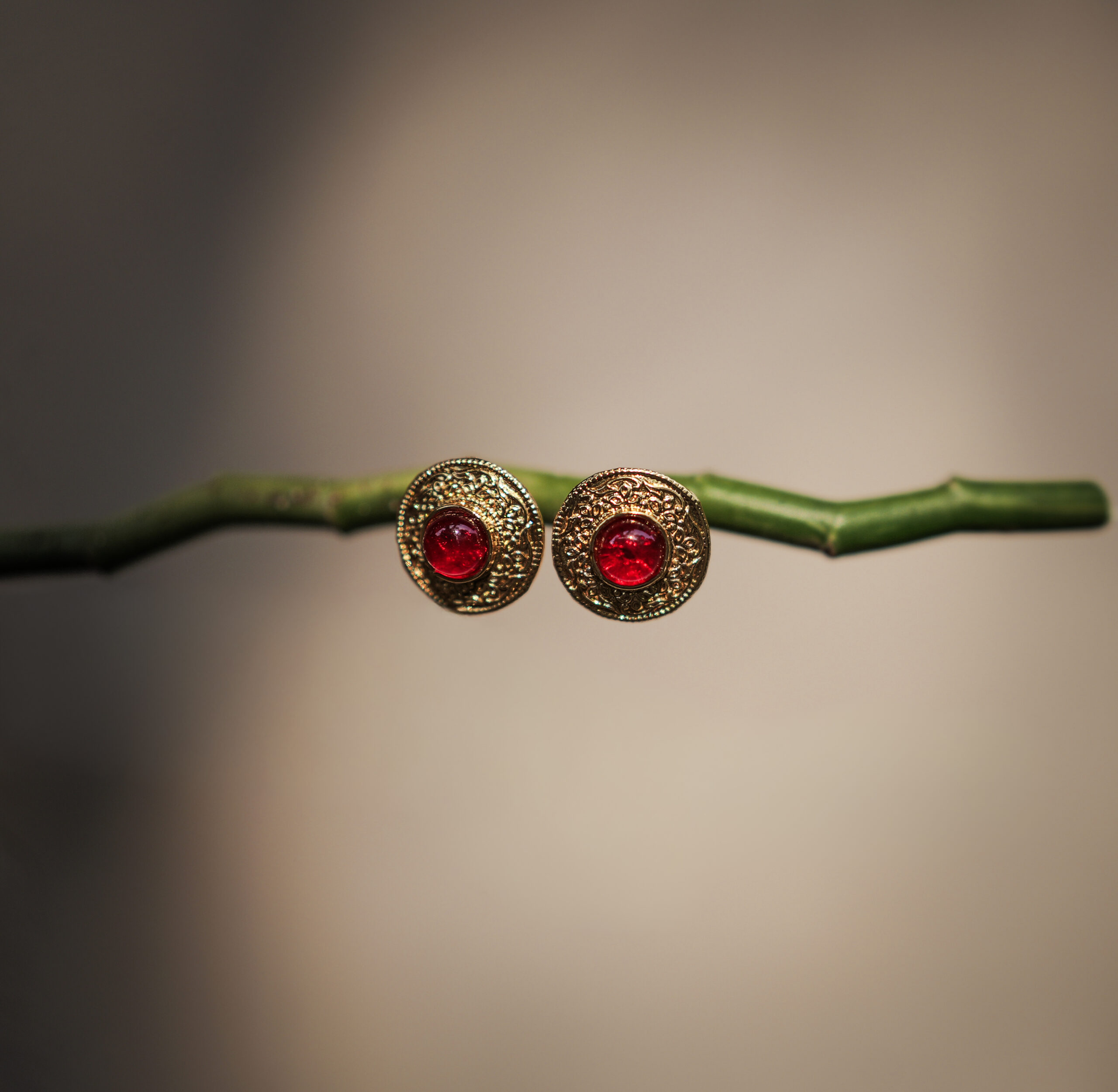 Add a royal touch to your jewellery collection with these elegant Chamba Gold Polish Rani Colour Tops. Inspired by traditional Himachali craftsmanship, these tops feature a rich rani (deep pink) stone setting beautifully enhanced with a luxurious gold polish finish.