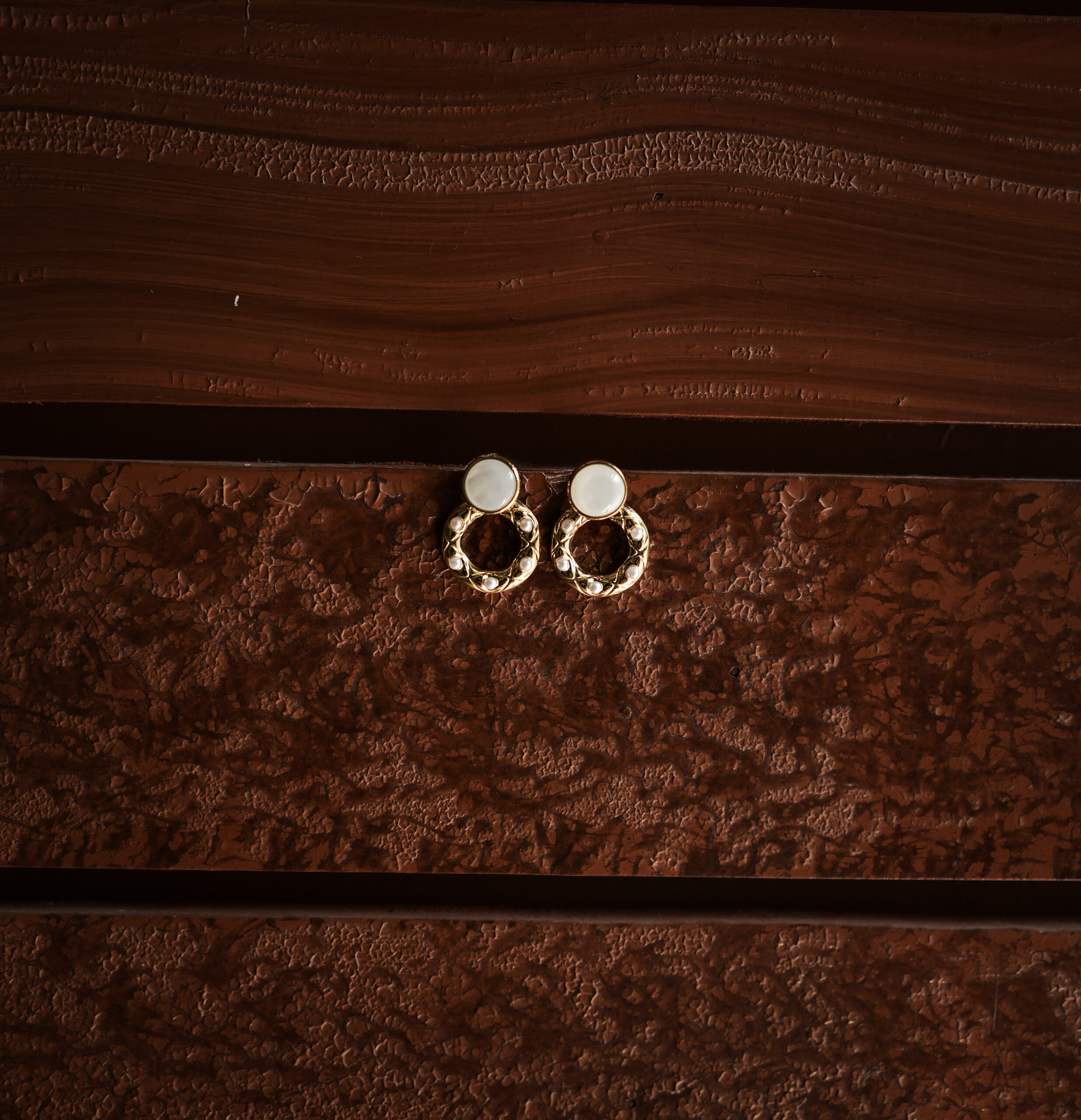 Add a touch of elegance to your look with these Gold Hoop Earrings. Designed with a smooth round stud top and a beautifully crafted hoop adorned with delicate pearls, these earrings offer a perfect blend of classic and modern style.