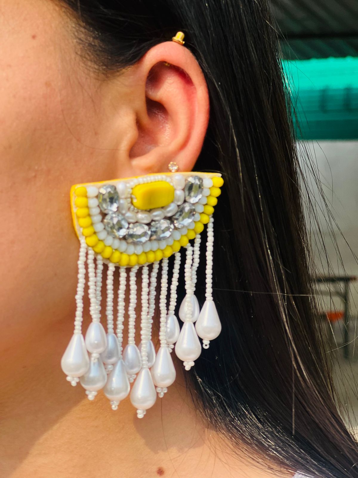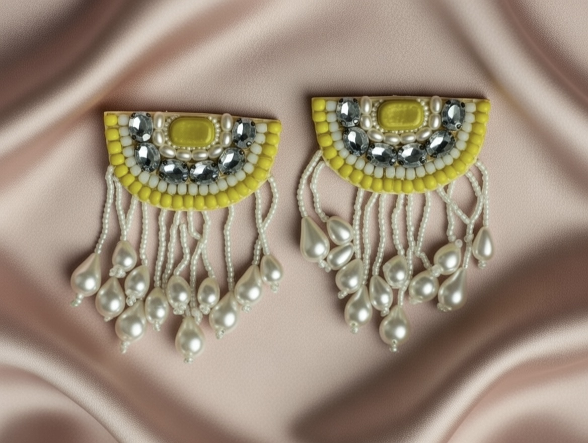 The soft sheen of pearls paired with the sunny brilliance of lemon diamond-cut stones creates a refreshing yet luxurious look. These earrings balance timeless beauty with a contemporary twist, making them a stunning addition to any jewelry collection.