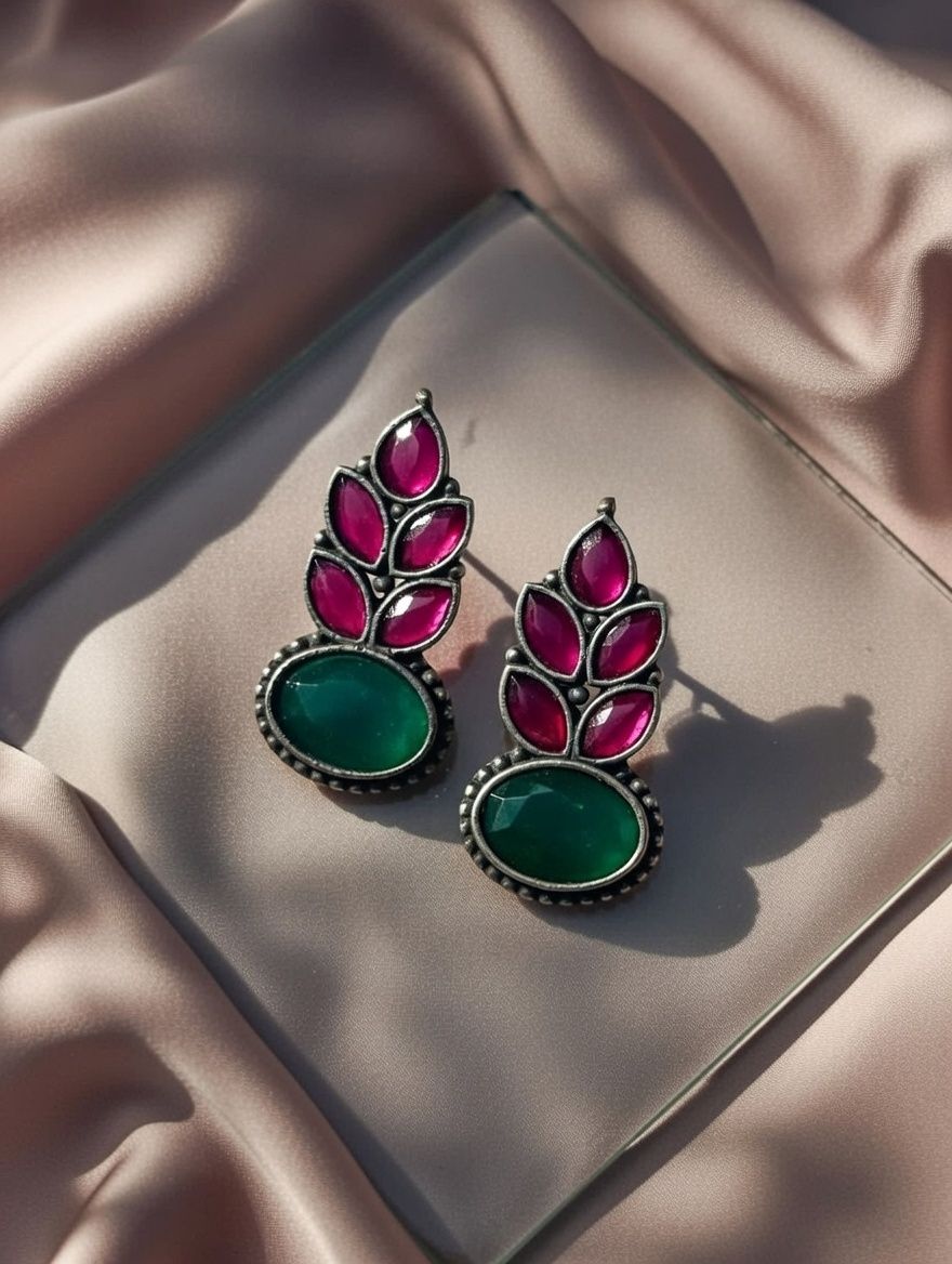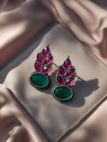 Add a vibrant traditional touch to your look with these stunning Oxidised Green and Rani Colour Earrings. Designed with a classic antique silver finish and beautifully accented with rich green and rani (deep pink) tones, these earrings bring the perfect balance of bold and elegant.
