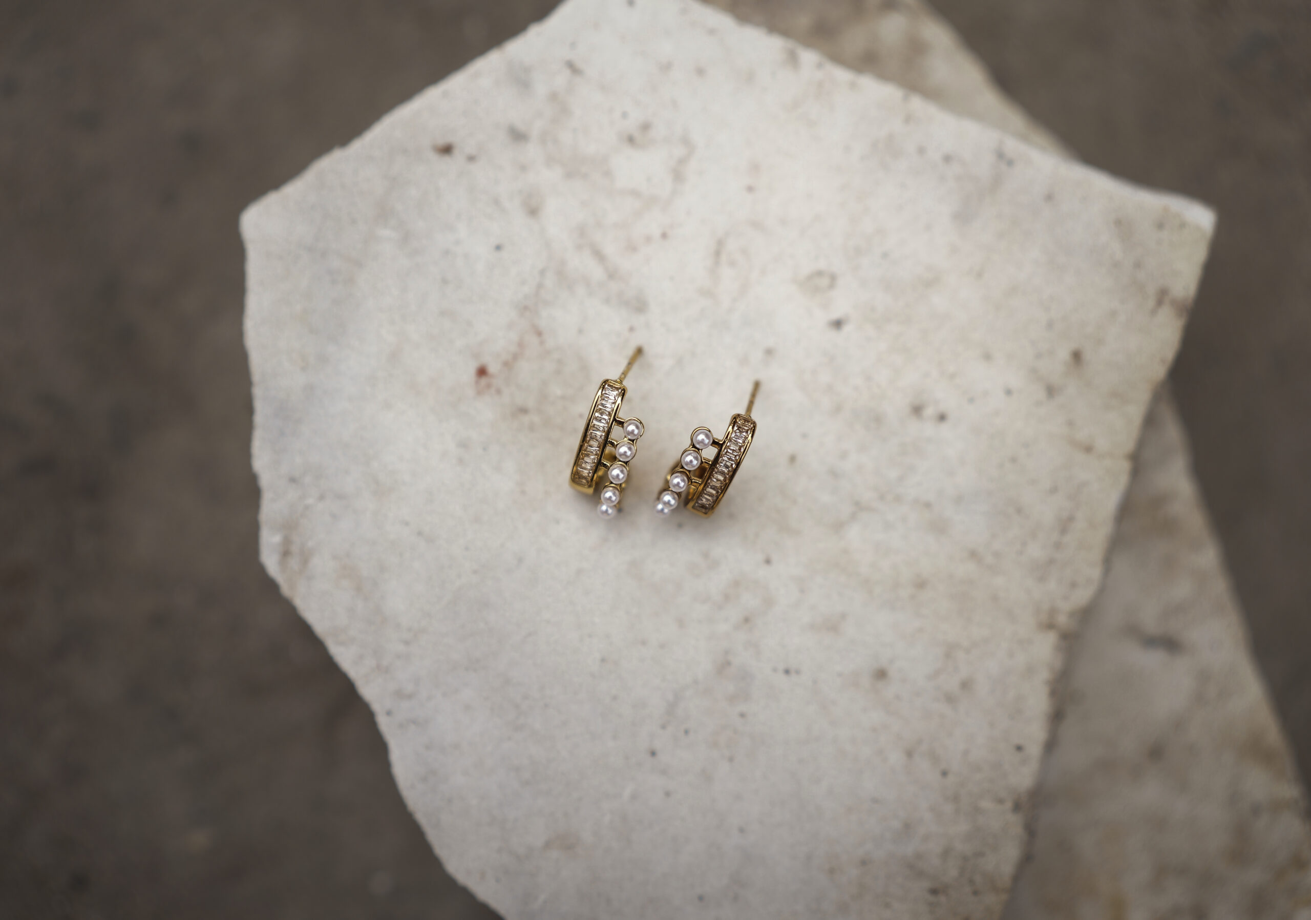 Elegant and stylish, these Pearl & Stone Gold Plated Half Hoop Earrings are designed to add a touch of charm to your jewellery collection. Featuring delicate pearls and sparkling stones set on a beautiful gold-plated half hoop, these earrings create a graceful and sophisticated look.