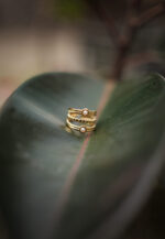 Stylish statement. Featuring a beautiful pearl paired with a modern triple round design, this ring blends classic charm with contemporary style.