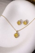 Be the first to review “Yellow Stone Diamond-Cut Necklace Set – 18K Gold Finish”