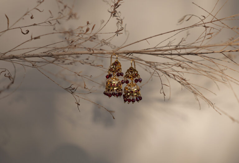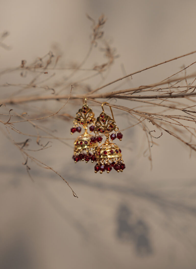 Traditional Gold Polish Mehroon Jadau Jhumki Earrings